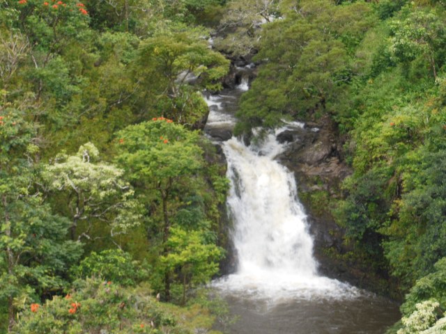 2006にテネシー・ノースカロライナ両州に跨るGreat Smoky Mountain, NPや2009にワイオミング・モンタナ・アイダボ3州に跨るYellowstone, NPは10MPHBの速度制限のある急な勾配の坂やカーブには「警音器鳴らせ」はあった。だが ハナへの道には狭いが無かった。情報がやや遅れている観光案内には注意が必要である。One Lane Bridgeの標識は道中に56箇所も出くわす、意味はこの先に車1台分の幅しかない橋の存在の意味で、先に橋に近づいた車両に優先権がある。対向車が無い場合は徐行通過、往きには橋の手前で当方を待ってくれ、親指と小指を立てるハワイ独特のサインで待機するマナーの善い車に出遭った。帰路は見習って先に停車すると同じサインで笑顔の返礼が気持ち善かった。